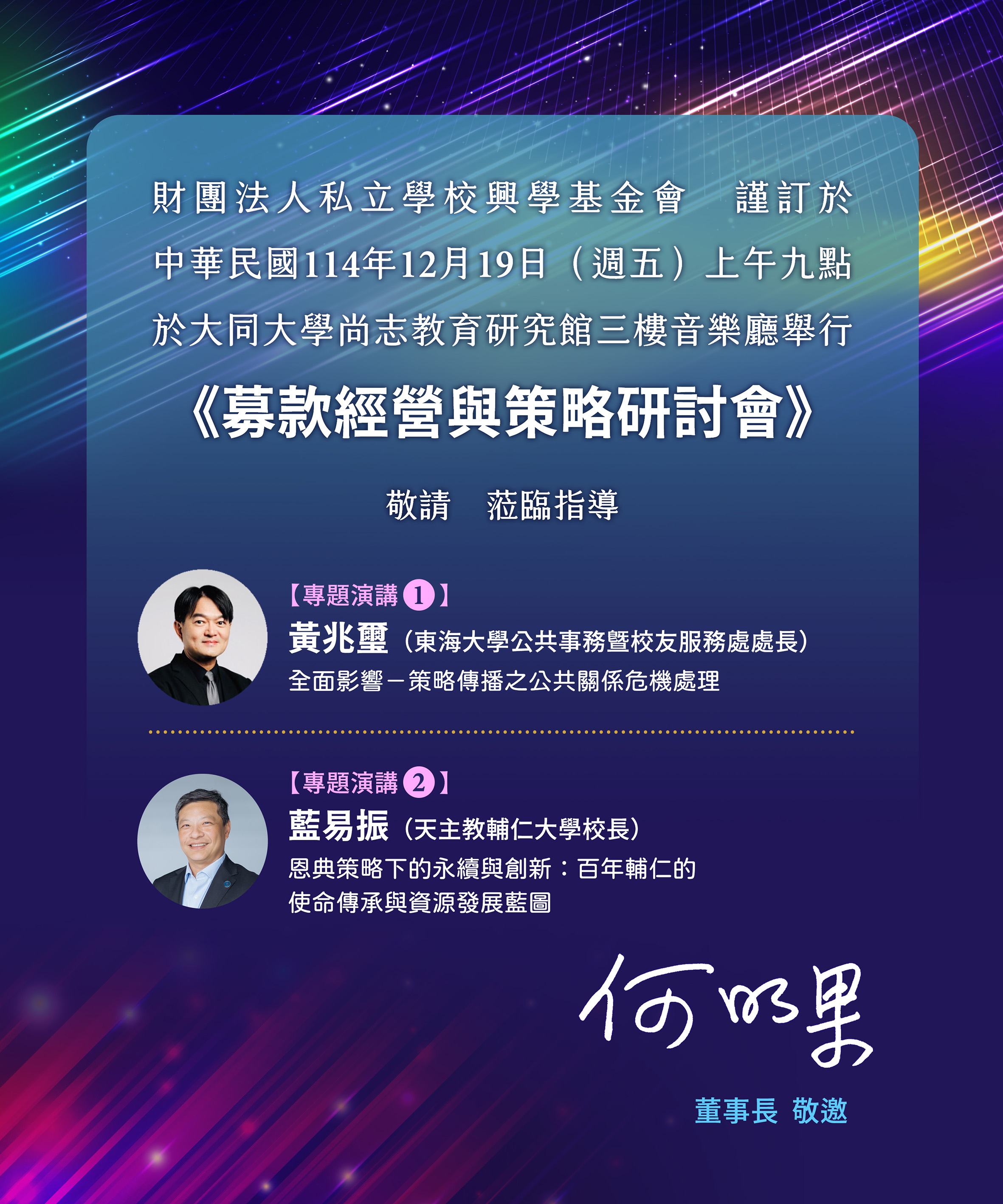 一、為增進私立學校募款能量,本會將於114年12月19日(週五)上午,